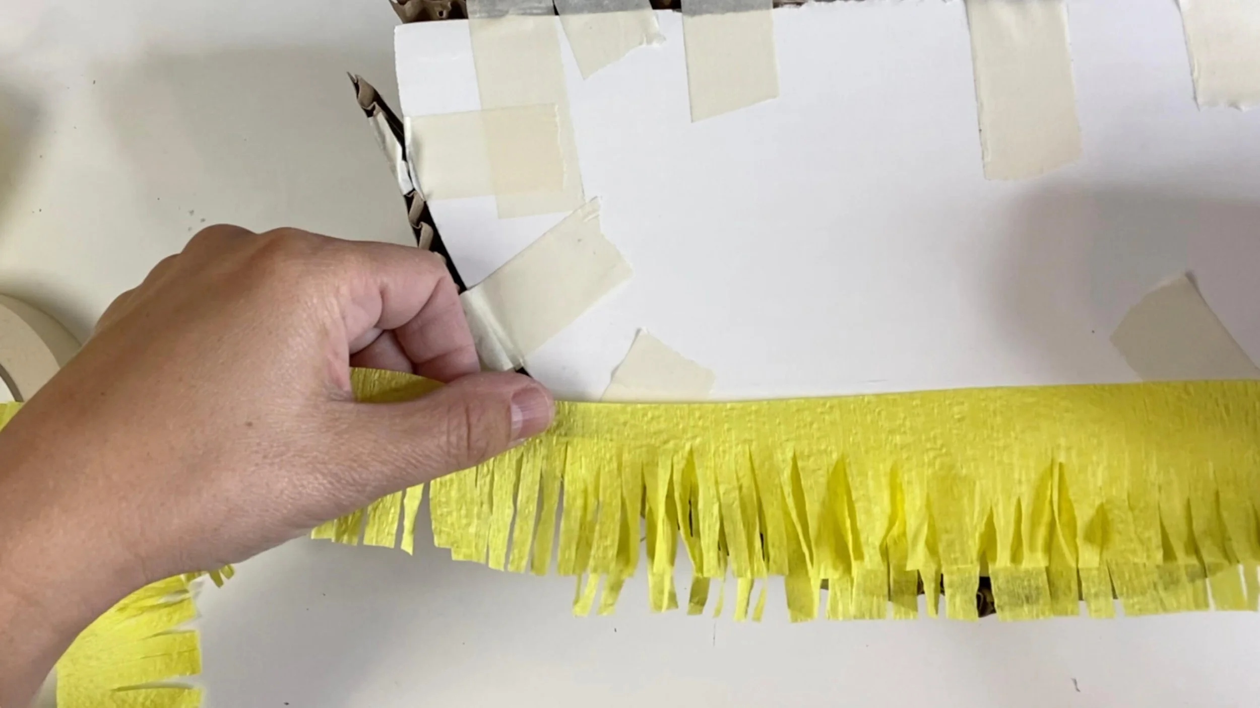 11. Cover the edges with 2 strips of yellow crepe paper following the same application process.