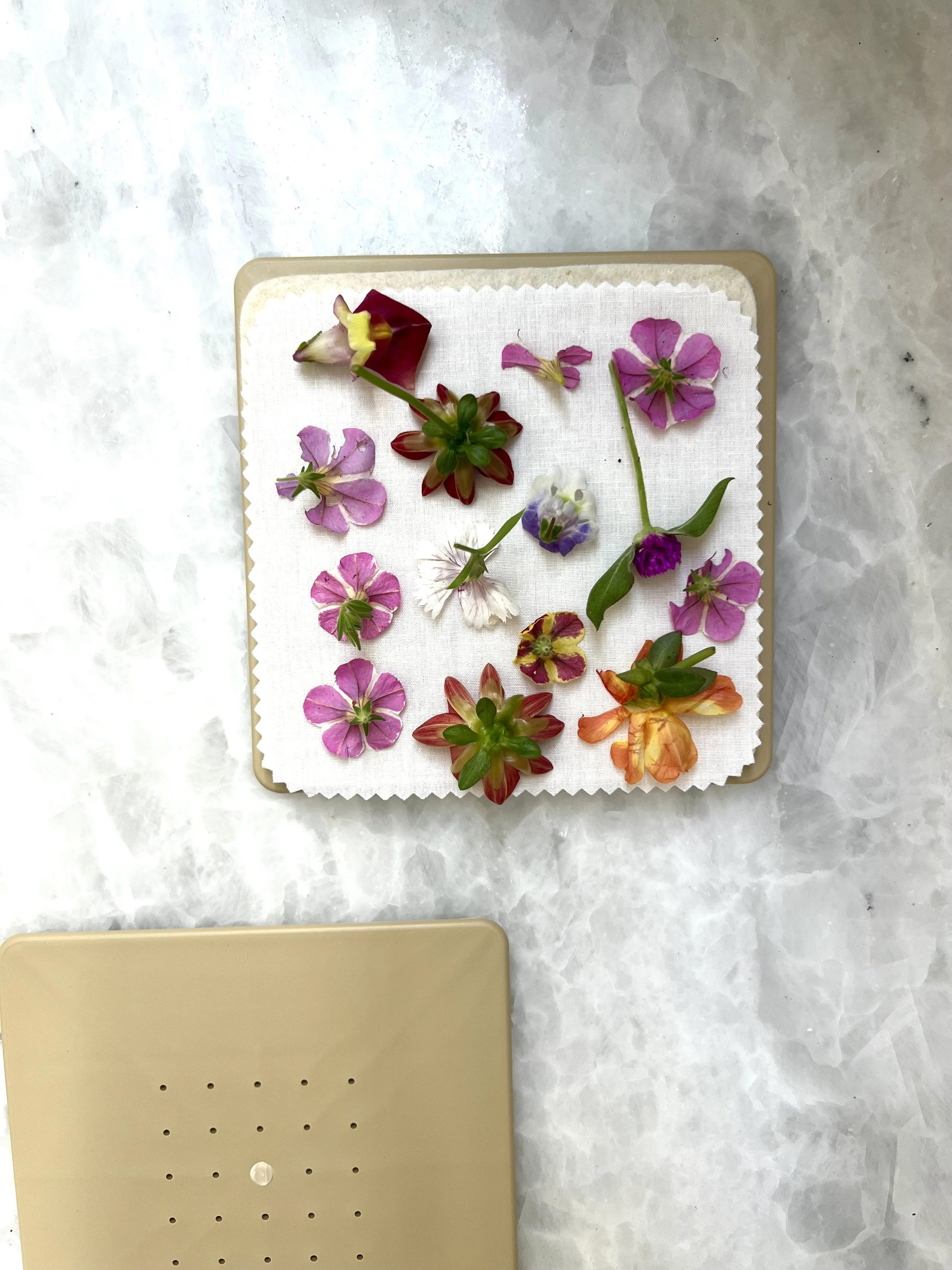 Use a store-bought flower press intended for the microwave. I love using the microfleur flower press.