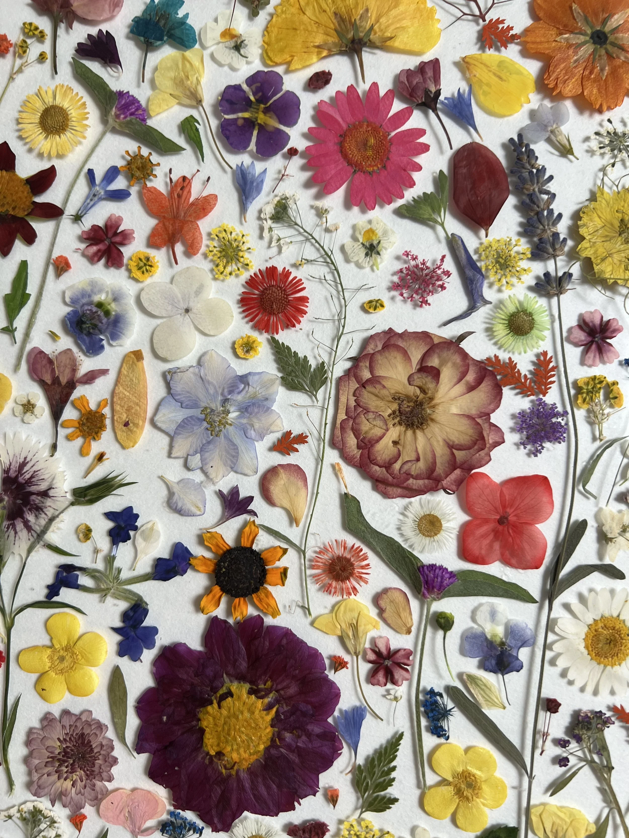 Every summer I plant a backyard garden. Typically my garden is more vegetable focused, but last year I decided to pivot to planting flowers instead. I was surprised by how much I enjoyed it. At first I was making floral arrangements for my friends and family, but then I started to explore flower pressing. From there I started teaching flower press art and to this day, it is my favorite workshop to teach. Why? Because everyone loves different types of flowers and use them to express themselves in different ways. Also, the possibilities for art that can be made using pressed flowers is pretty limitless.
